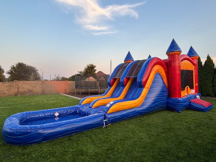 These units have a bounce house with a slide attached.....best of both worlds!!